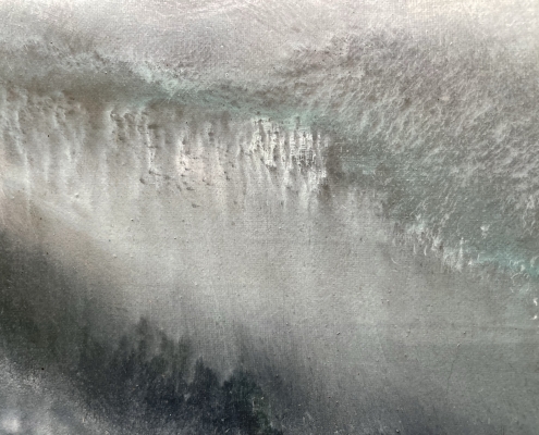 Il y a la présence matérielle, la trame, le tissus, le pigment, la terre, le bleu, le marbre… c’est le
